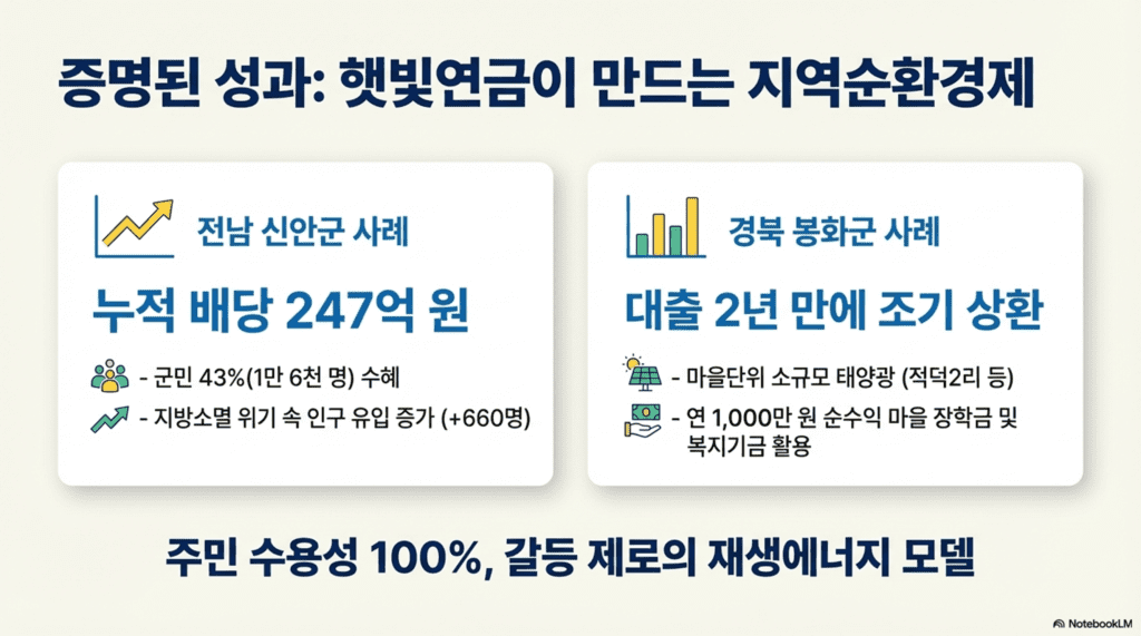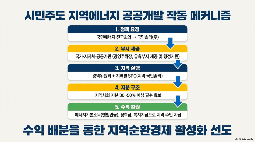 🎯 2030년 7GW 목표, 햇빛연금 시대! 우리의 목표는 명확합니다. 2030년까지 원전 7기에 맞먹는 7GW 규모의 분산형 재생에너지를 구축하는 것입니다. 더욱 놀라운 것은 이 총사업 수익의 **30~50% 이상을 지역사회에 환원(지역자산화)**한다는 점입니다. 이렇게 창출된 수익은 ‘햇빛배당’이나 ‘햇빛연금’ 형태로 지역 주민들에게 돌아가 지역 경제를 살리는 선순환 구조를 만듭니다.